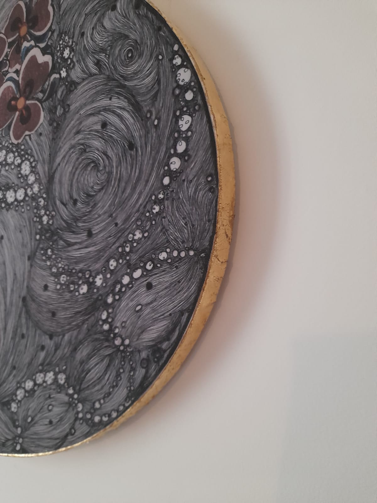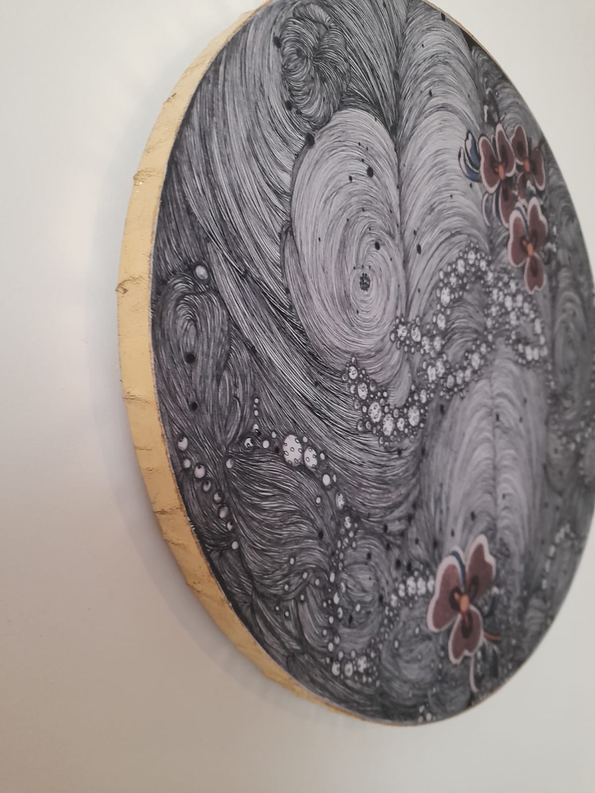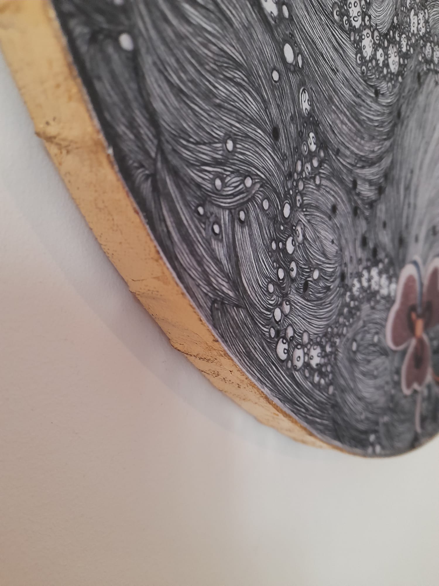Graphite, Ink, Collage and Paper on Canvas. Gold Leaf. Hand Embellished
