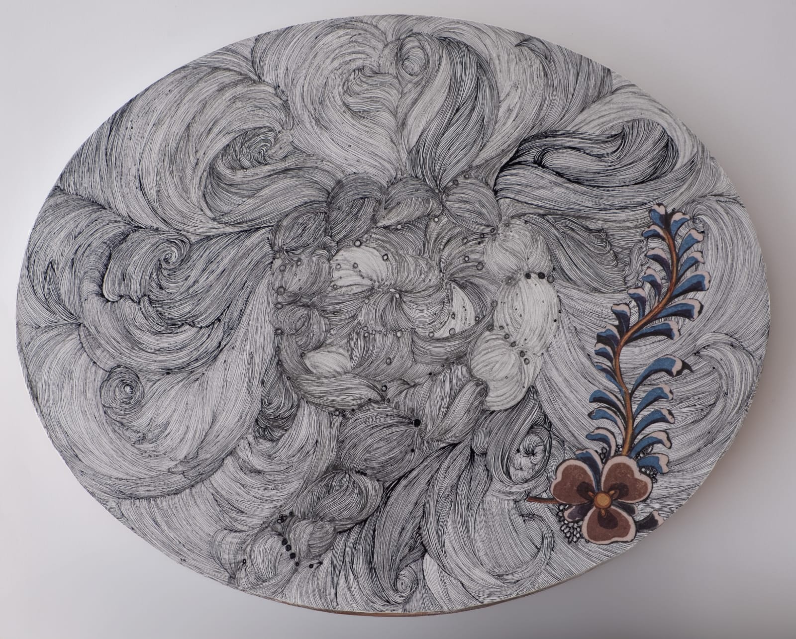 Visible invisibility. The seen but not seen. This collection is about looking and the female gaze. I use my work as a form of resistance. They are interventions to disrupt viewing patterns. The eye is lead into labrynth games as the viewer chases and follows the maze of lines across surfaces. Playful yet quietly subversive, I would describe them as spaces for dreaming and escape. Spaces to get lost in.